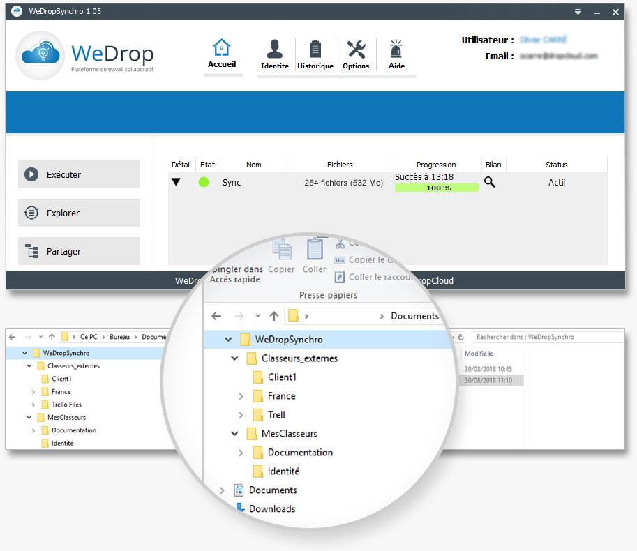 Vos fichiers accessibles en permanence sur tous vos postes avec WeDrop Synchro